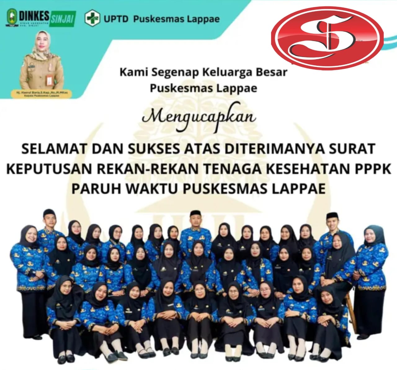 Acara penyerahan SK berlangsung dalam suasana penuh kehangatan, kebersamaan, dan kekompakan keluarga besar Puskesmas Lappae. Kegiatan tidak hanya diwarnai prosesi seremonial, tetapi juga dirangkai dengan yel-yel kebersamaan yang membangkitkan semangat, keceriaan, dan rasa persaudaraan antar tenaga kesehatan.